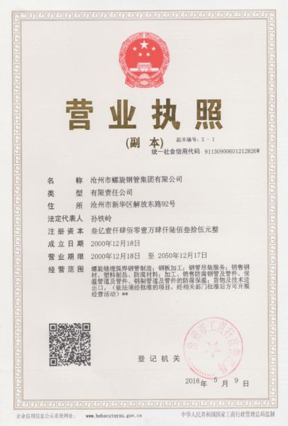 沧州市螺旋钢管集团有限公司网站由中国照明招标网制做维护。内容真实性及解释权归沧州市螺旋钢管集团有限公司负责。