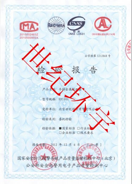 手持金属探测器HY-1001检验报告